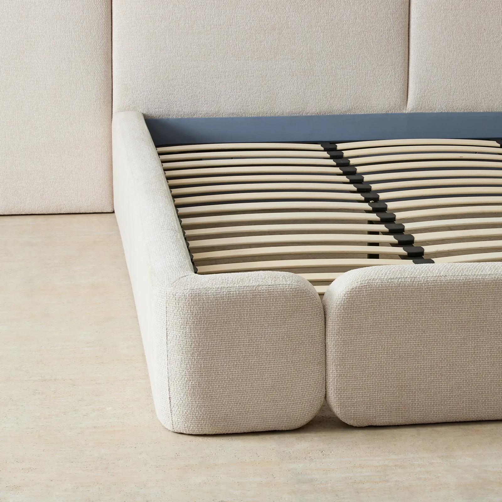 Its thoughtful proportions allow for a spacious feel, while the low-profile base enhances its visual appeal. This fusion of modern design and comfort makes the Arcadia bed a timeless addition to any bedroom.