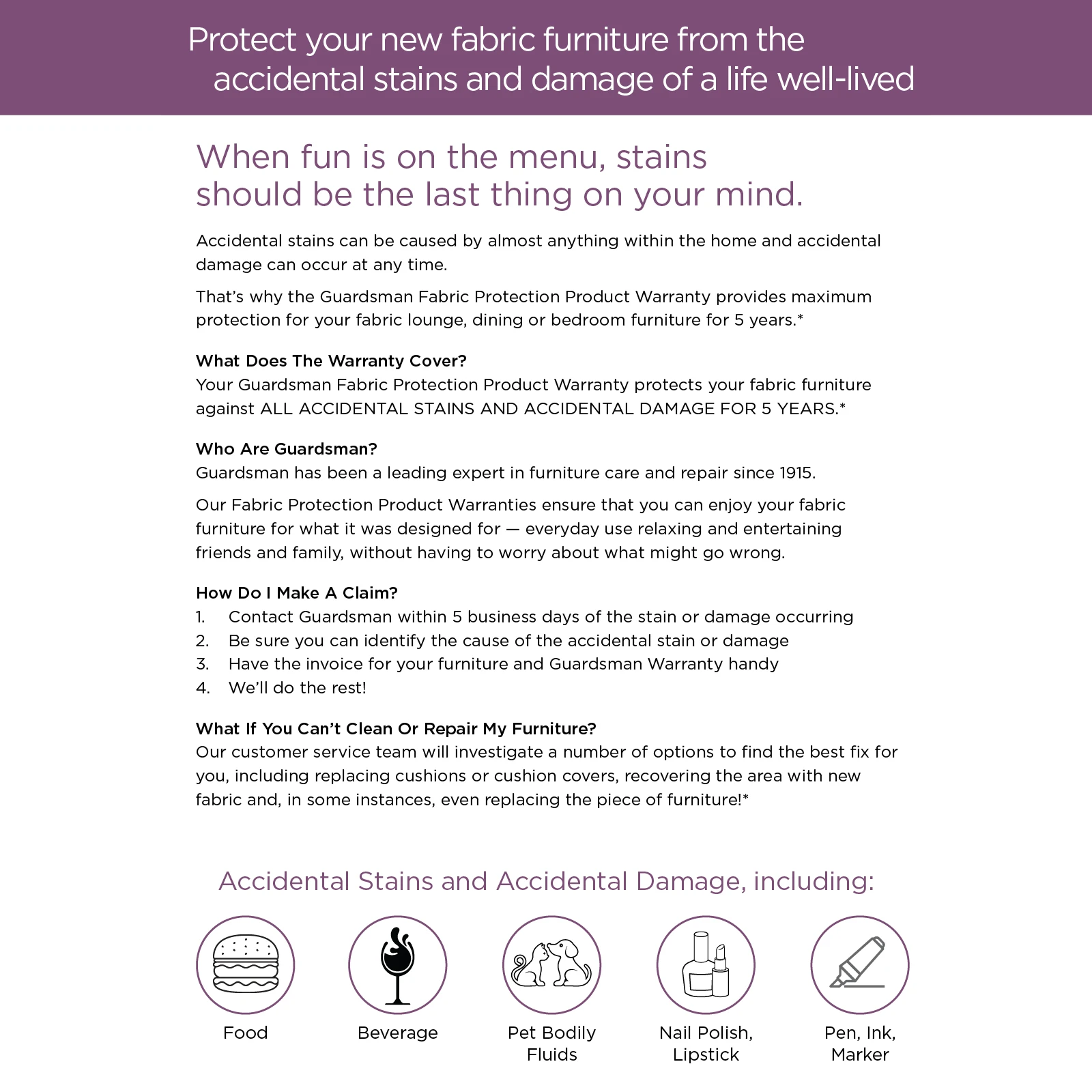 成为第一个“Guardsman Fabric Product Warranty 5-8 Seater” 的评价者