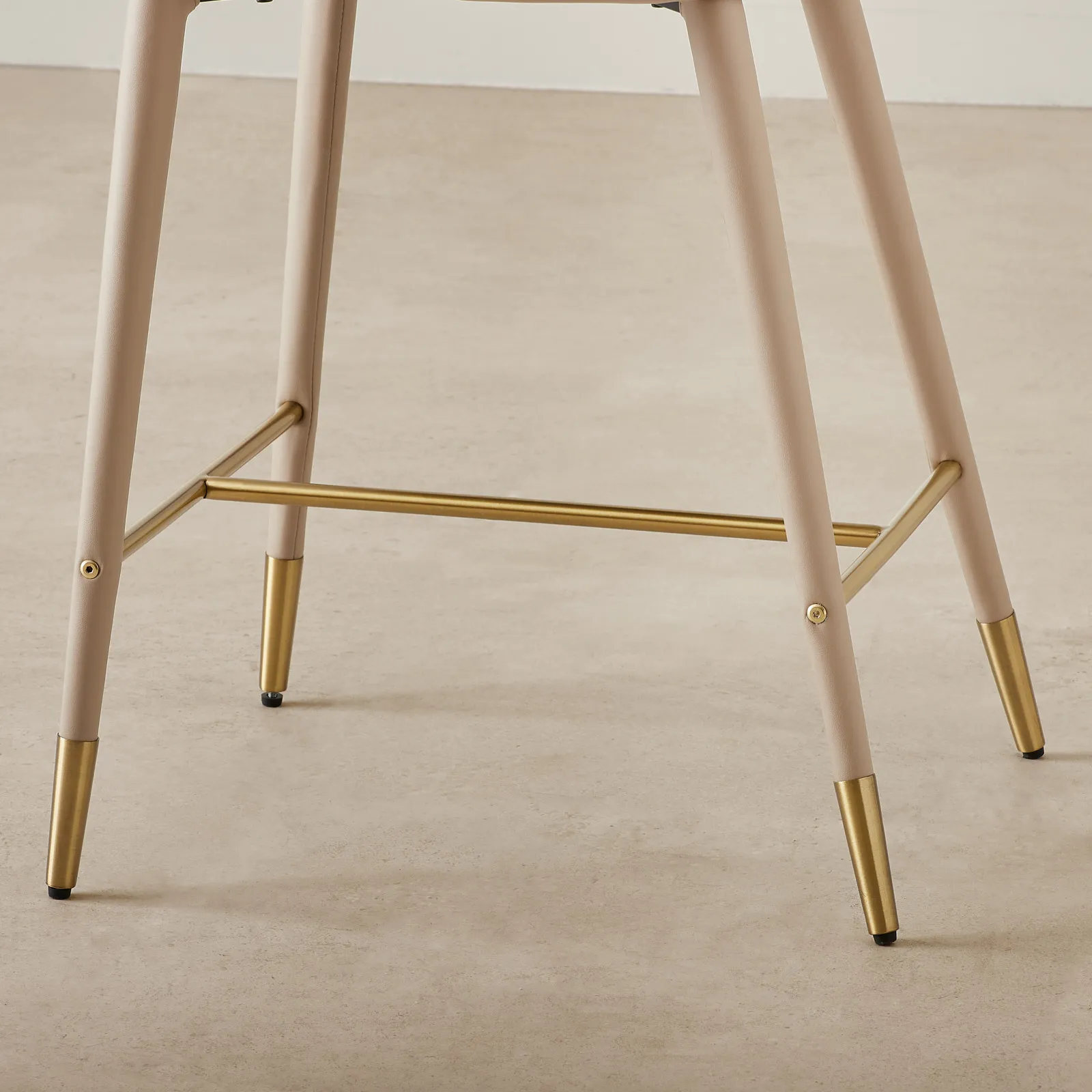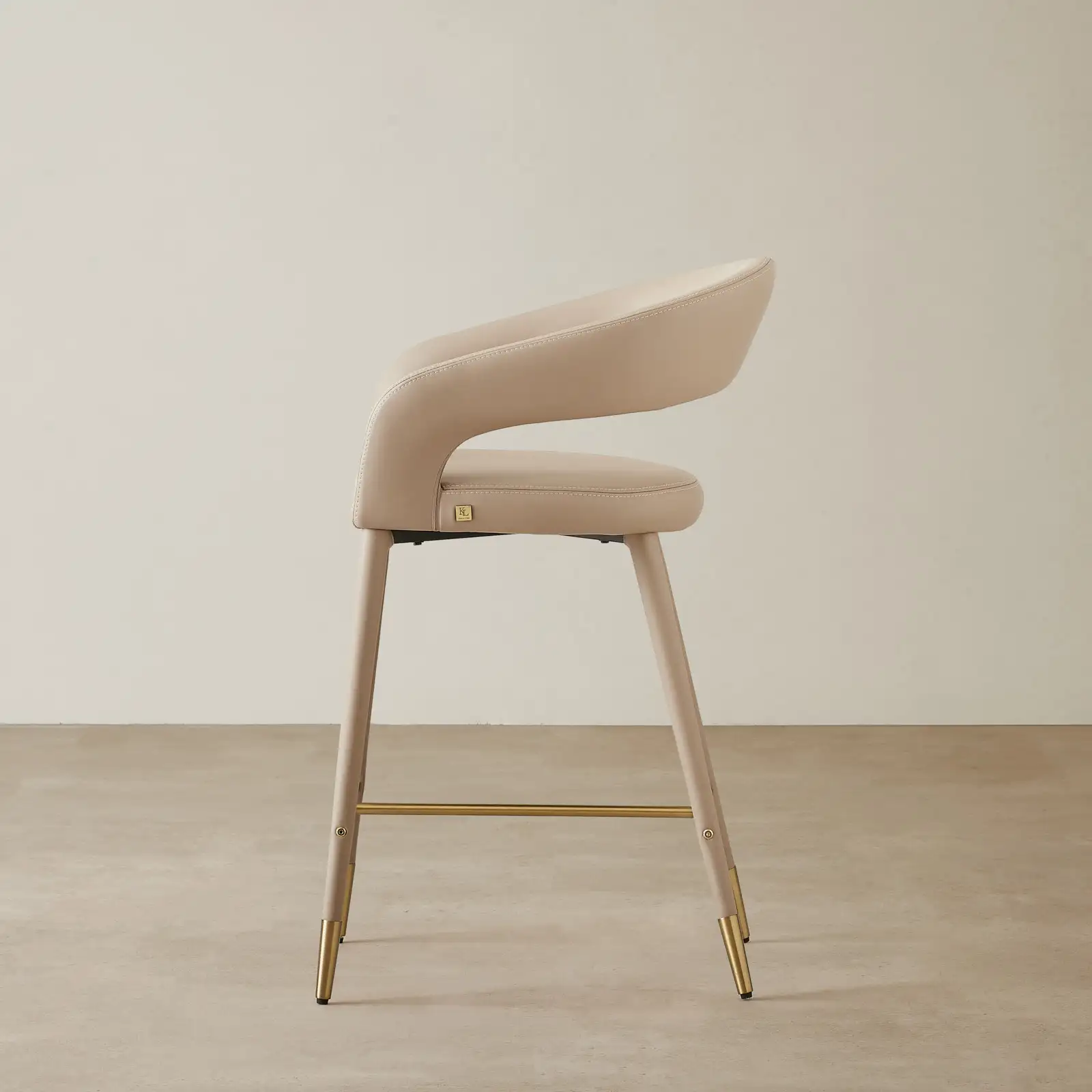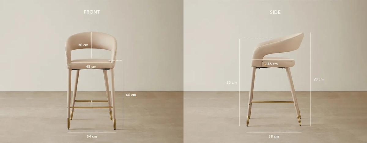 The Moulin Sand Beige Counter Stool is designed for comfort and style. It has a vegan leather seat in sand beige with an open back and slim angled legs.